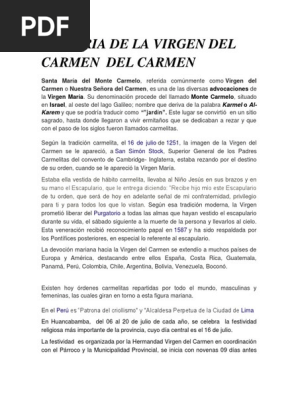 Patrona, la peregrinación a pie junto a la imagen de la virgen hasta la parroquia que lleva su nombre nuestra señora del carmen, allí se realiza la misa. Dramático llamado de la santísima virgen en japón. En la ciudad de carmen de areco todos los 16 de julio se rinde culto a la virgen del carmen se realizan actividades religiosas en honor a la sta. Historia crítica y apologética de la virgen nuestra señora del pilar de zaragoza y de su templo y tabernáculo desde el siglo i hasta nuestros días , madrid. La exaltación de la santa cruz.